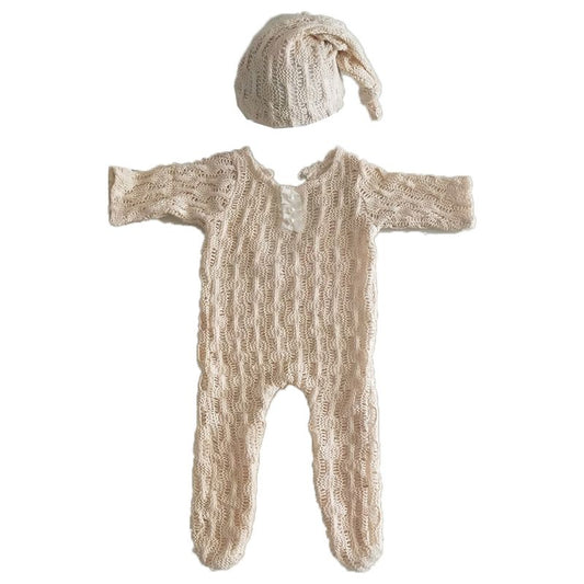 2Pcs Newborn Photography Props Suit Romper + Hat Set Long Sleeve Jumpsuits Bodysuit Handmade Knit Outfit Clothing Infants Shower